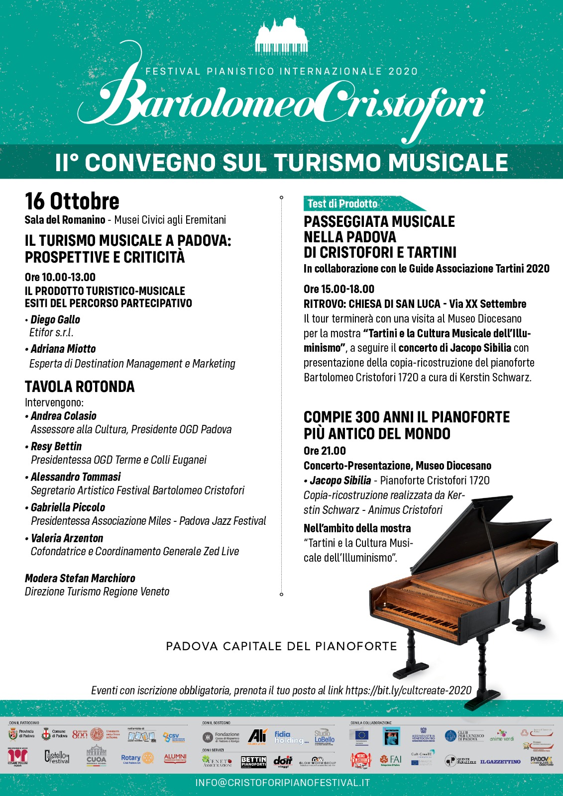 Realizzata in collaborazione con le Guide Associazione Tartini 2020. Il Festival Bartolomeo Cristofori e il team di Cult-CreaTE stanno lavorando per creare nuove opportunità per il turismo musicale padovano e valorizzare le esperienze già in essere. Durante l’evento i partecipanti potranno condividere le loro opinioni e il tour terminerà con una visita al Museo Diocesano per la mostra “Tartini e la Cultura Musicale dell’Illuminismo”, con la visione della copia-ricostruzione del pianoforte Bartolomeo Cristofori 1720 a cura di Kerstin Schwarz e con l’anteprima del concerto di Jacopo Sibilia.